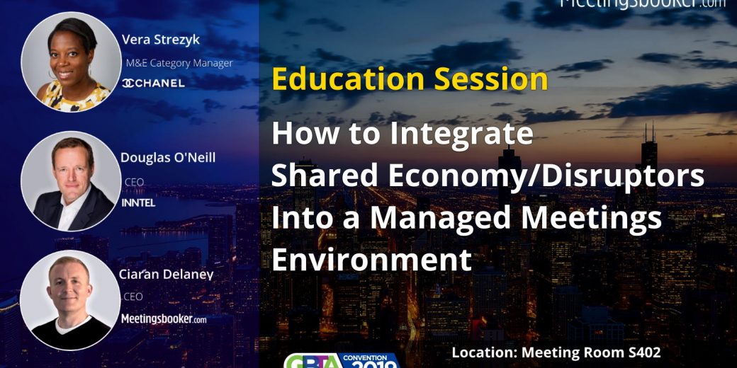 Our CEO Ciaran Delaney will co-moderate a session at the GBTA Conference in Chicago next week along with Véra Strezyk (Nguidjoe) from Chanel and @Douglas O’Neill from Inntel covering “How to integrate sharing economy venues into your meetings program”.